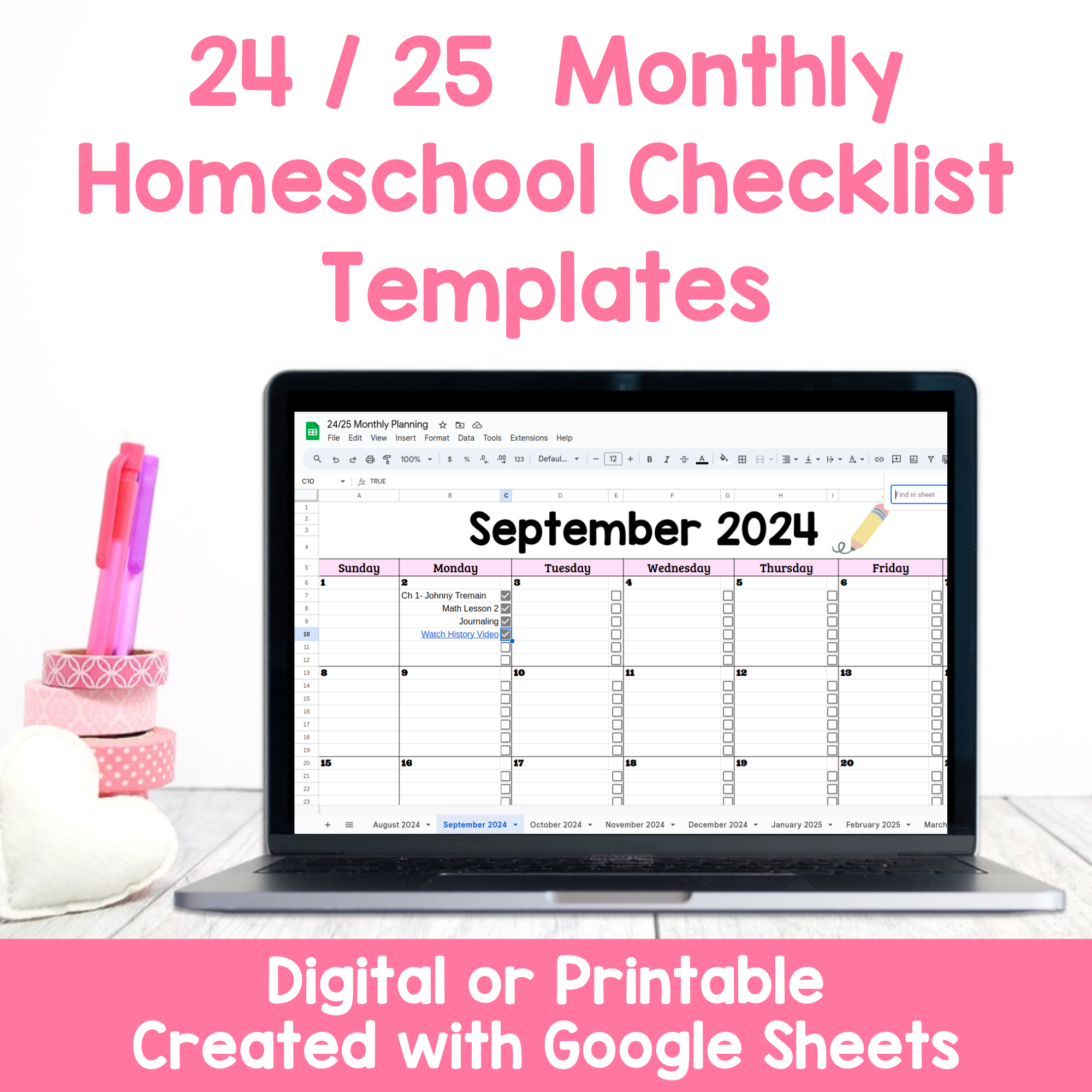 Homeschool Monthly Task and Assignment Checklists- 24/25 Academic Year